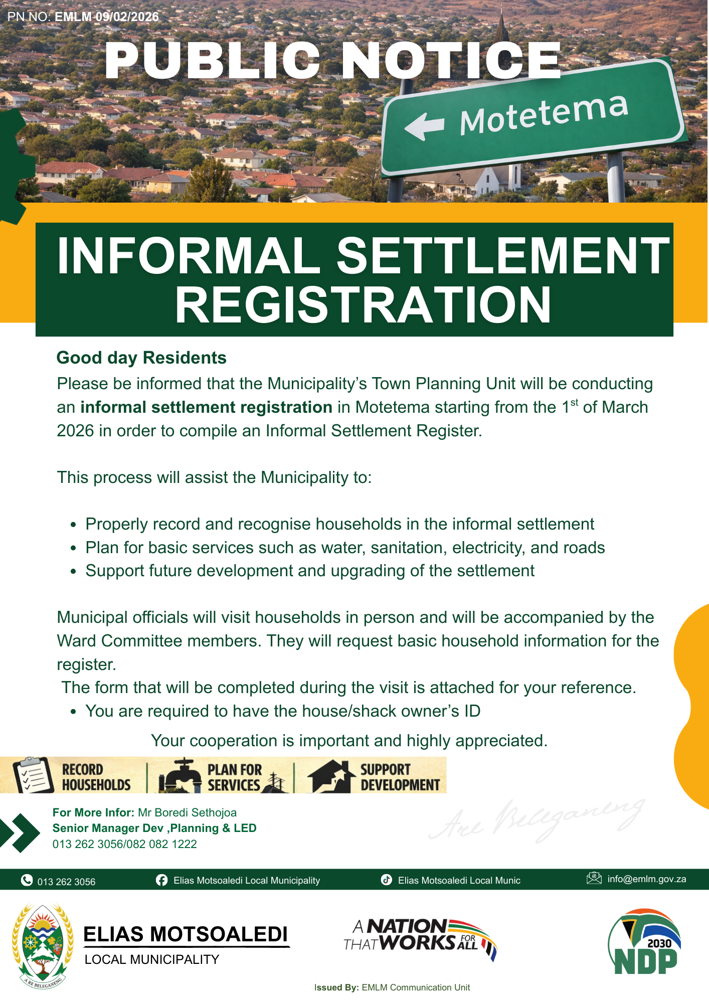 PUBLIC NOTICE: INFORMAL SETTLEMENT REGISTER- TOWN PLANNING UNIT